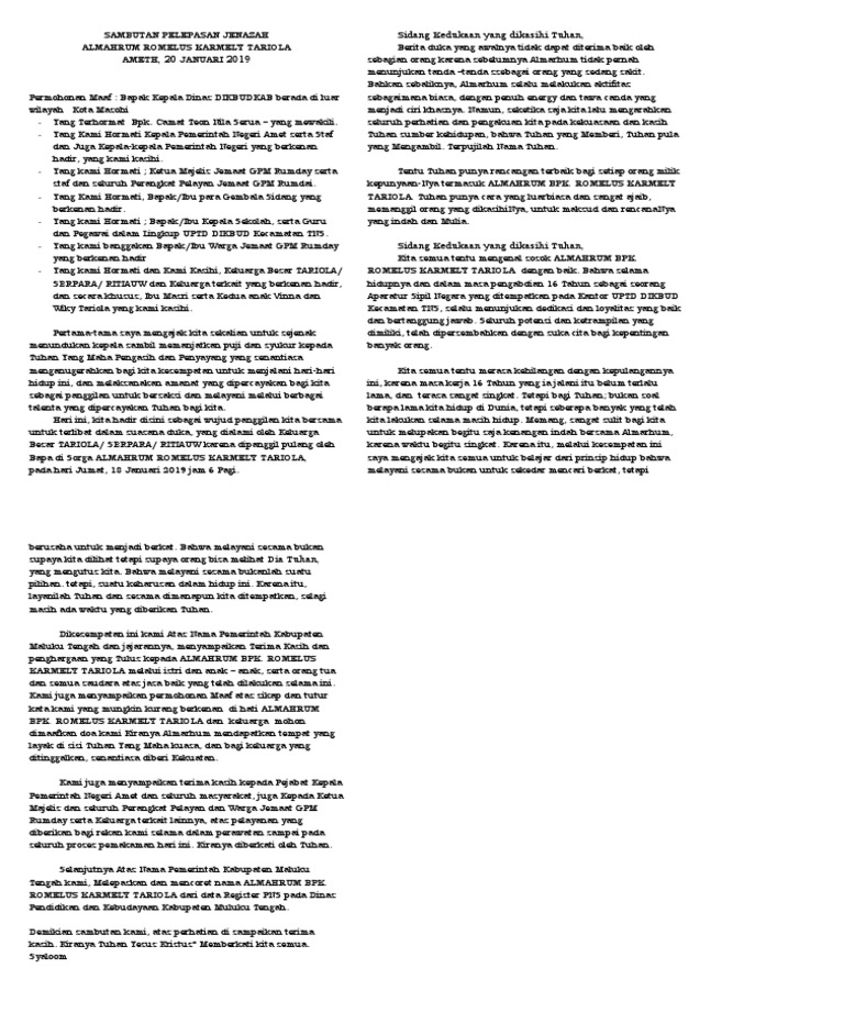 Pidato pelepasan jenazah pahlawan revolusi oleh jendral a h nasution. Kepala desa ponggok, junaedi mulyono yang sukses berkat inovasi dan kreativitas sumber gambar. Sebesar besarnya kepada panitia pilkades desa blayu yang telah memberikan kesempatan kepada saya untuk menyampaikan. Acara ini merupakan acara formal dengan. Acara pelepasan jenazah merupakan acara penghormatan terakhir bagi seseorang yang berperan penting dalam sebuah organisasi.